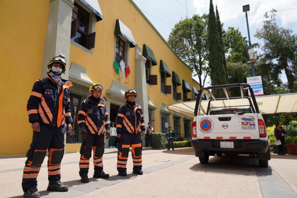 Una vez que sonó la alerta sísmica de un sismo hipotético de magnitud 8.1, las brigadas de voluntarios guiaron a aproximadamente 300 trabajadores de la alcaldía a la explanada, en coordinación con Protección Civil, donde se contó con la participación del H. Cuerpo de Bomberos de la Ciudad de México y la Cruz Roja Mexicana y sus binomios caninos.