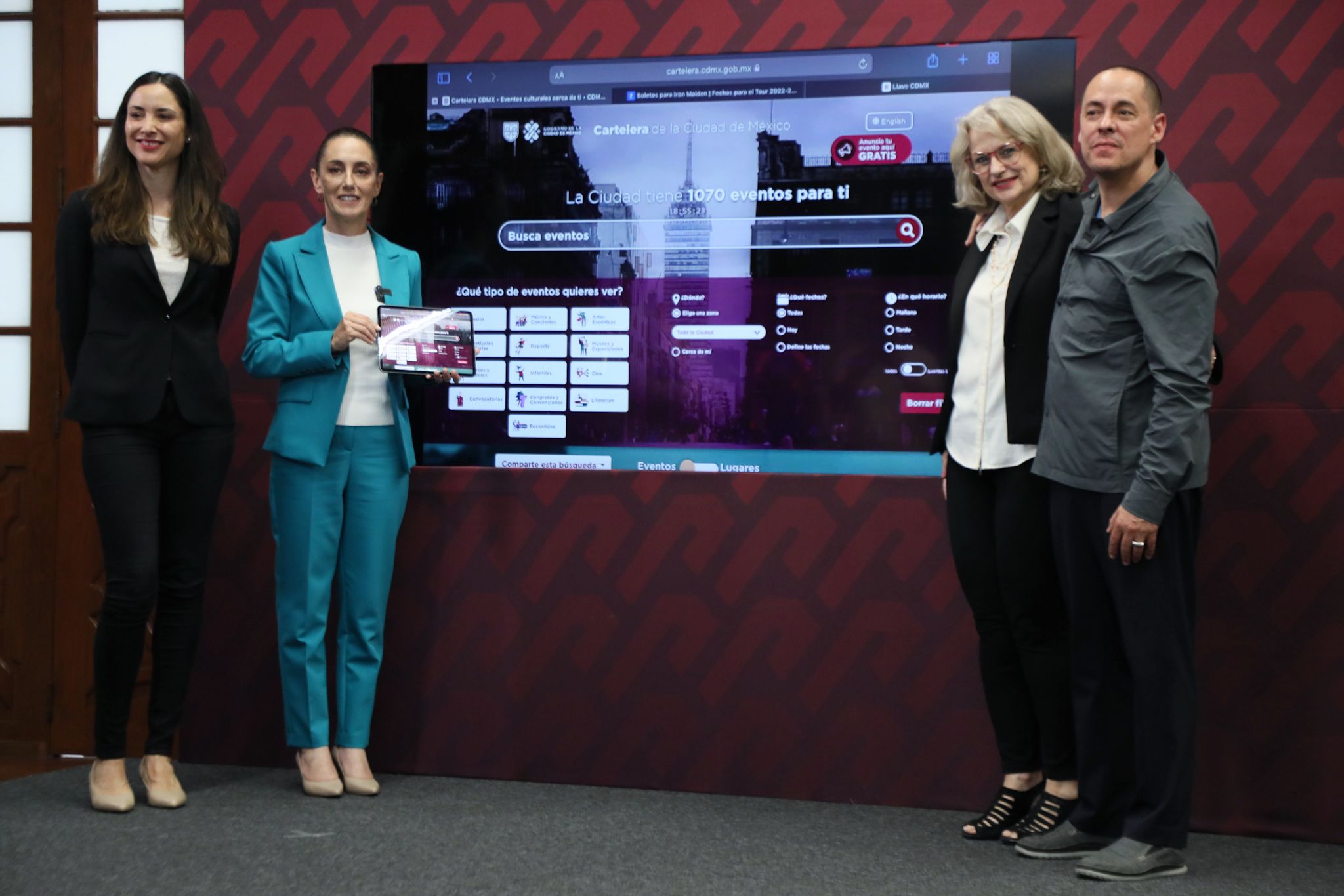 José Antonio Peña Merino, titular de la Agencia Digital de Innovación Pública (ADIP), hizo una demostración del funcionamiento de la cartelera digital y mostró las distintas opciones para encontrar algún evento, ya sea por tipo de artista, actividad o cercanía, de acuerdo a la ubicación.